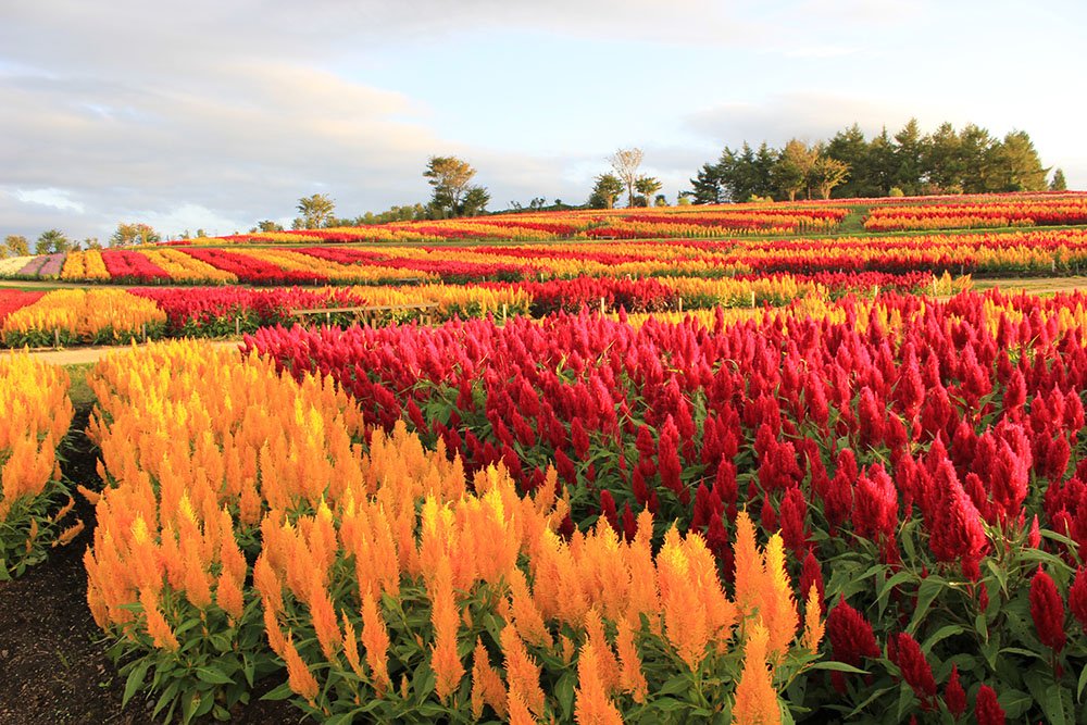 Celosias reach their peak from September to October, with about 250,000 plants spread across 30,000 square meters (approx.7.4ac.). The vast landscape, perfectly filled with vividly colored red and orange blooms, is breathtakingly beautiful and sure to leave visitors in awe.