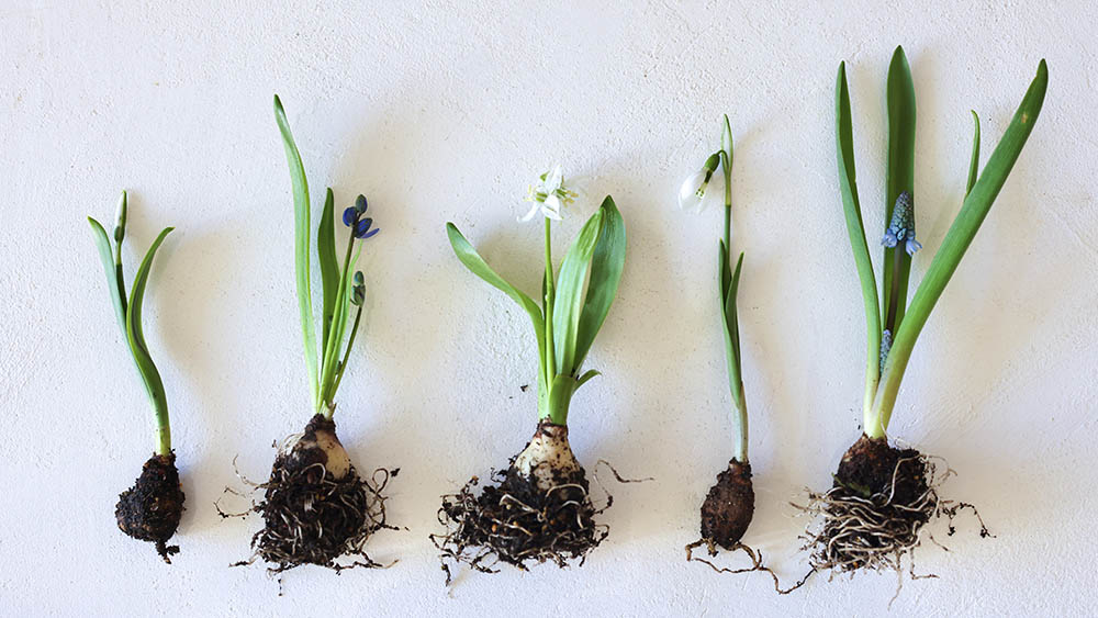 今回お届けする球根は、講師の牧野さんが冷蔵保存などをして開花調整をしてからお送りします。地植えやプランターに植え付けて自然に開花するよりも早いタイミングで花が見られるうえ、寒さにより長い期間咲き続けるのも魅力です。さらには、人気の北海道ガーデン「上野ファーム」の白樺の小道の春を再現したい! と特別に取り寄せられた「上野ファーム」産の剪定枝を刺して、可愛いミニチュアガーデンに仕上げる“ガーデンストーリー”オリジナルのレッスンです。