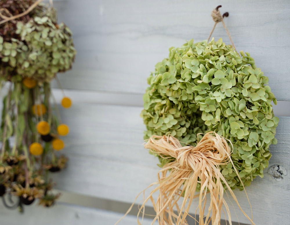 初めて切り花にして楽しむ際には、一輪挿し。少しステップアップするなら、花と葉を組み合わせたアレンジに挑戦してみては。成長が早いイポメアはおすすめの素材です。そしてさらに上の楽しみ方としてリースづくりがあり、アナベルやゴンフレナなどの花が向いています。
