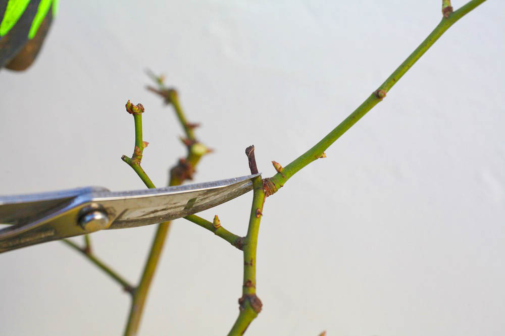 12月下旬から2月に、春にたくさんの花を咲かせるために行います。全てのバラに必須の作業です。
