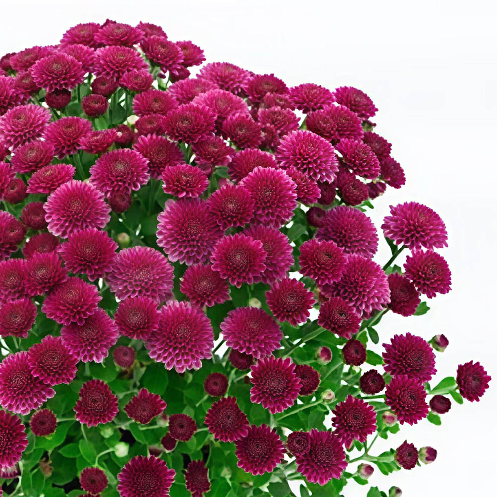深みのあるダークチェリー色で上品な印象のガーデンマム。奥行きを感じる花色が楽しめます。