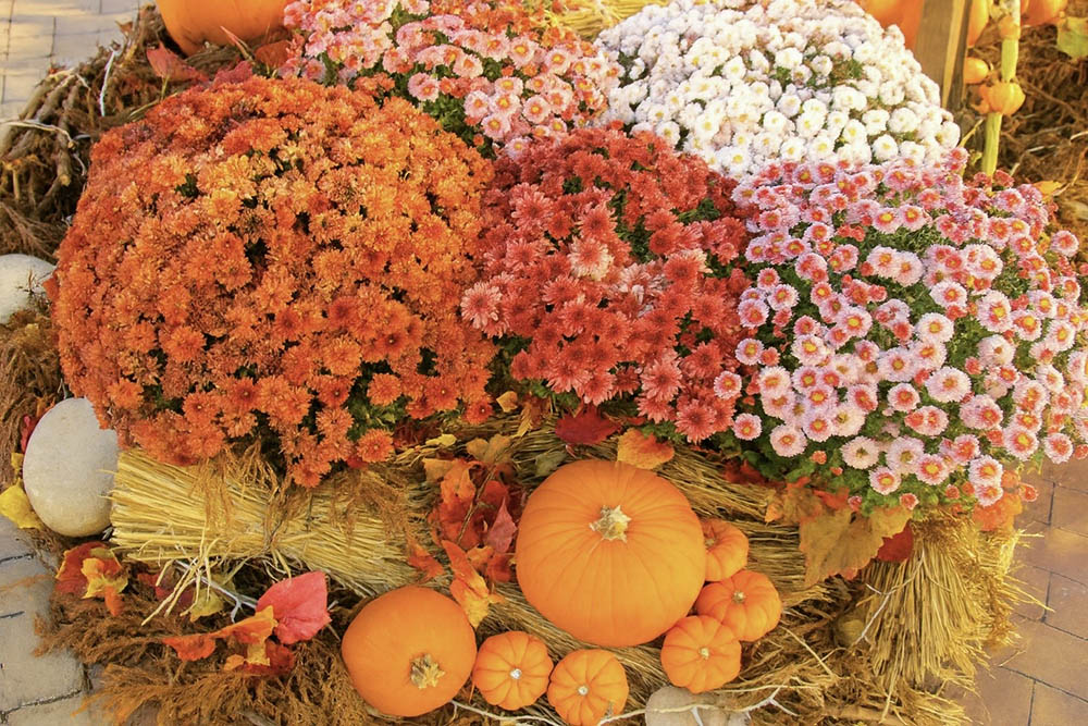 特にアメリカでは開花時期が重なることもあり、ハロウィンやサンクスギビング(感謝祭)の時期に、カボチャやワラ、コーンストークなどと一緒に玄関や庭を飾る定番の植物として扱われています。寒くなるにしたがい花が少なくなる晩秋にも、ひと際鮮やかに咲き、抜群の花もちのよさで長く秋を彩ってくれる頼もしい存在です。