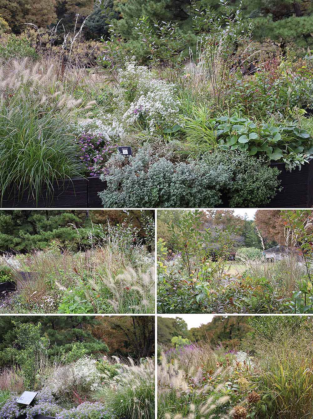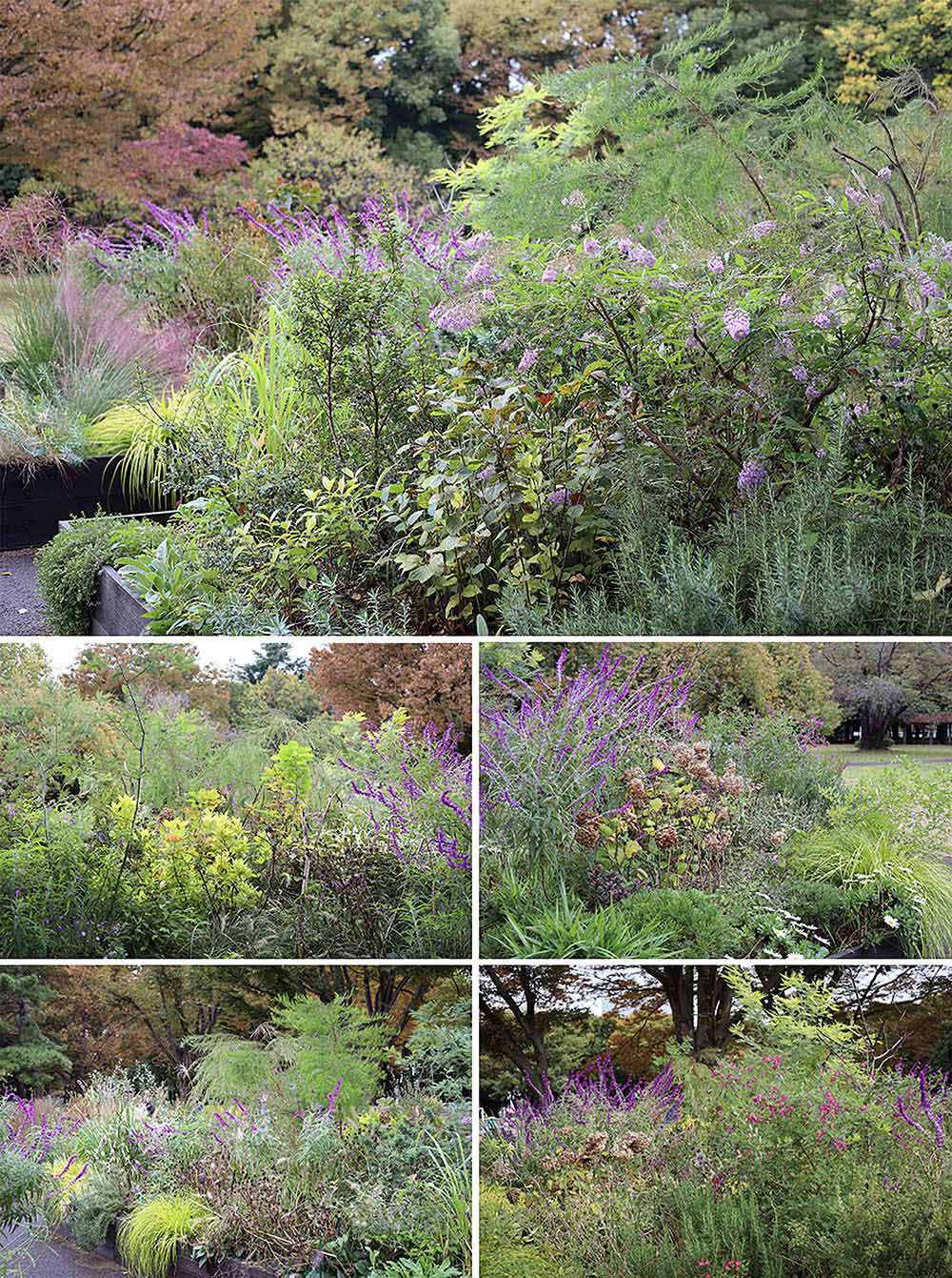 開花(結実)期を迎えていた植物 アスター‘シロクジャク’、アスター・アンベラータス、アスター‘オクトーバースカイズ’、ガイラルディア‘グレープセンセーション’、シュウメイギク‘ハドスペンアバンダンス’、リアトリス・エレガンス、キヨスミシラヤマギク、アロニアほか