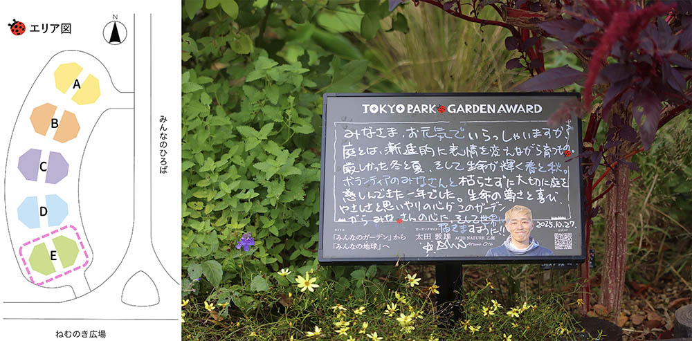 私達の住む世田谷の地の親しみある砧公園で、地域でつながった仲間たちとコンテストに挑戦し、ガーデンをつくり上げ、管理しながら見守ることができました。今後も地元を盛り立てたツールとして、このガーデンが区民の憩いの場になることを期待しています。ガーデンは人と植物だけではなく、人と人とのつながりを生み出すコンテンツ。メンテナンス中などに、来園者にガーデンの説明や見所、今後の楽しみなど、ガーデンの意図を直接伝えることの重要性に気づきました。
