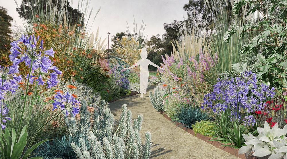 ・バンクシア、カリステモン、ハマゴウやメリアンサスなど、海辺の環境に耐えながら、豪州庭園を有する公園の既存植生や景観、海風の雰囲気に馴染む庭景を演出します。