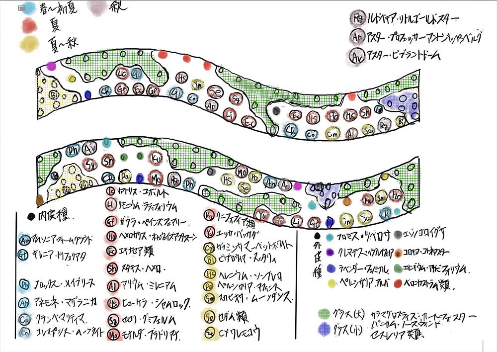 グラス類:カラマグロスティス・カールフォスター/パニカム・ヘビーメタル/セスレリア・オータムナリス/フェスツカ・アメジスティナなど