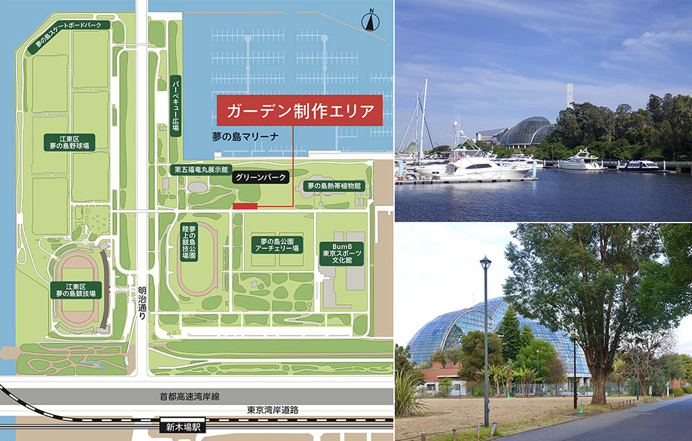 アクセス:東京メトロ有楽町線(Y24)・JR京葉線・りんかい線「新木場」下車、徒歩7分。東京メトロ東西線「東陽町」(T14)から都バス(東陽町-新木場、東陽町-若洲海浜公園)「夢の島」下車。高速湾岸線「新木場インター」より5分
