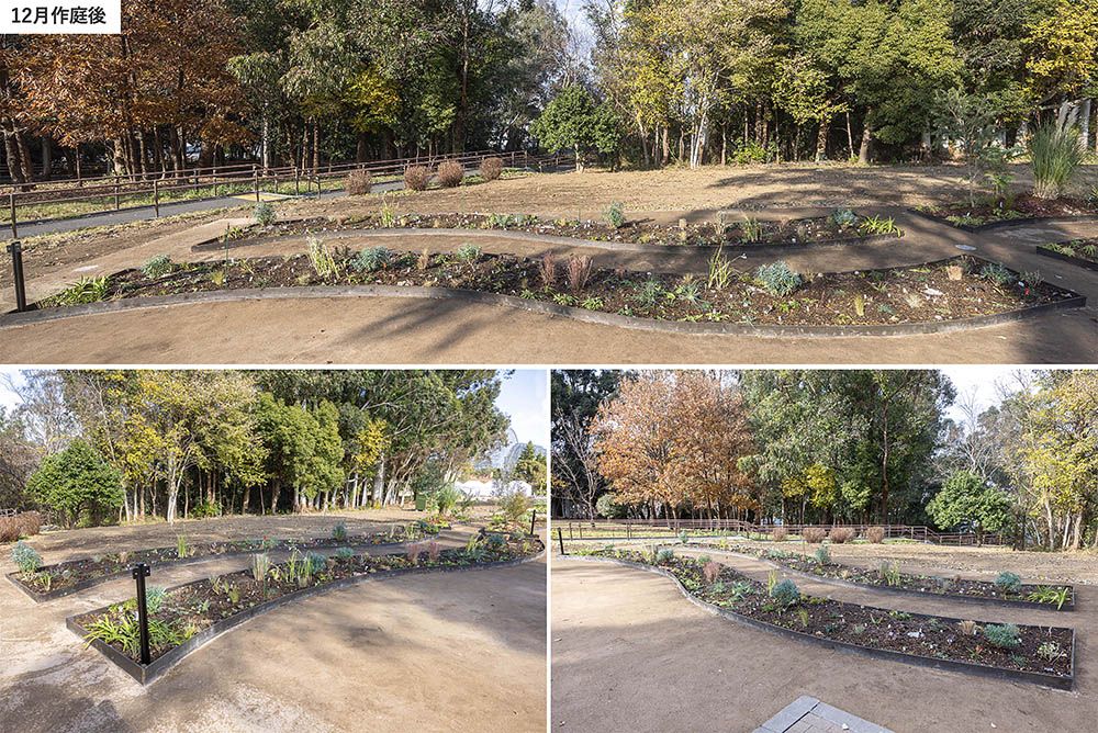 コンテストに挑戦する5名の入賞者が1年を通してガーデン制作に挑む「東京パークガーデンアワード」。2025年12月中旬に、それぞれの区画で作庭が完了しました。その後、4月は春の見頃を迎えた観賞性を審査する『ショーアップ審査』、7月は梅雨を経て猛暑に向けた植栽と耐久性を審査する『サステナブル審査』、11月は秋の見頃の観賞性と年間の管理状況を審査する『ファイナル審査』が行われ、グランプリが決定します。