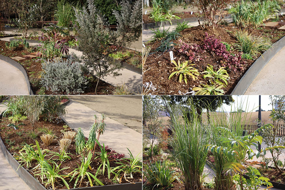 公園内の通路に沿って2対1組のウェーブガーデンが5つ並んでいます。常緑のユーカリを背景に、通路からコンテストエリア全体を眺めたり、2対のウェーブガーデンの間の通路を歩きながら、AからEへと移り変わる景色を楽しめるのも魅力。植物をすぐそばに感じられる、心地よい空間です。