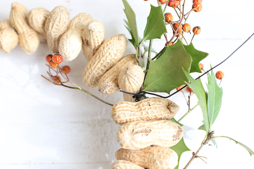 先日、食品も扱う100均に行ったら殻つきの落花生が売られていました。殻つきの落花生まで100円で買えることに驚きながら、この落花生を使い、節分のリースが作れないかと思い立ちました。