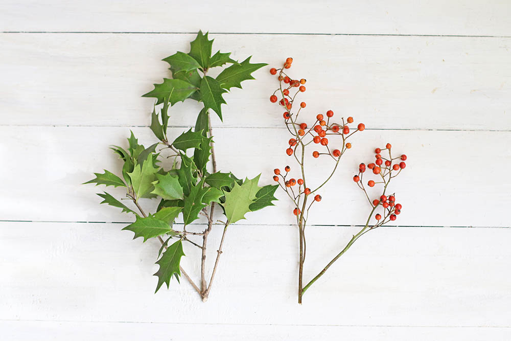 ほかに、ヒイラギと野バラの実を用意しました。