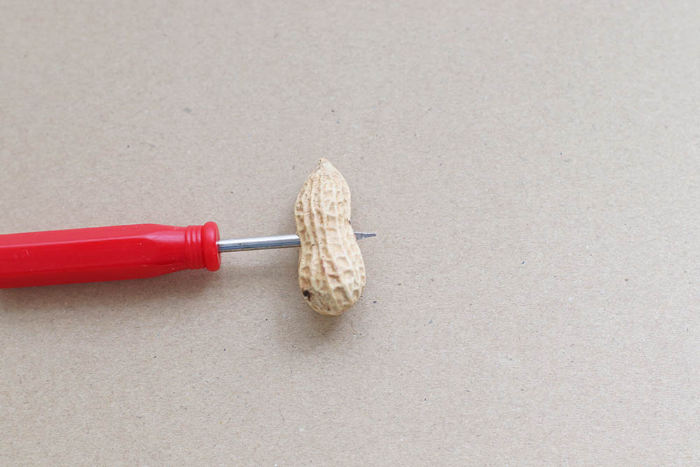 落花生の向こう側まで穴が開くようにしっかりとドライバーを挿します。