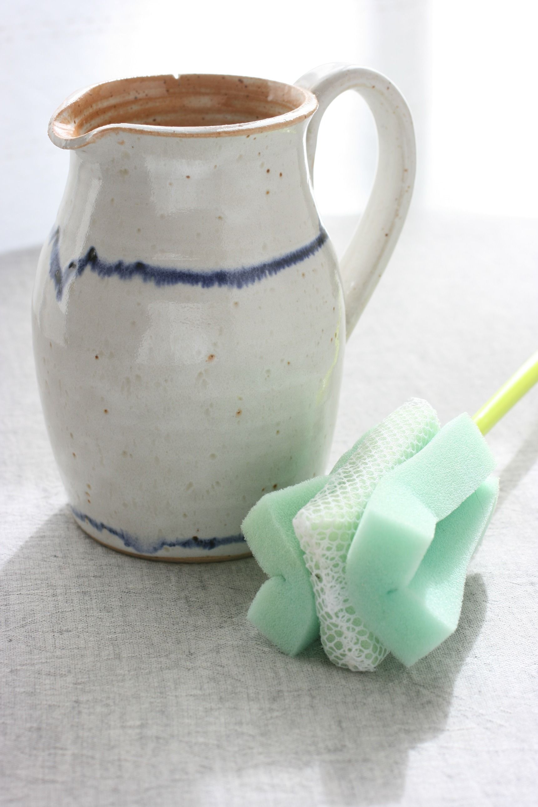 水替えとは、花をいけたあと、器の水を入れ替えることです。いけた水は、見た目には変わらなくても、汚れているもの。毎日が難しくても、2日にいちどは、器の中の水をきれいな水に替えましょう。その際、茎も丁寧に洗い、ヌメリを取るのがベター。また、器の中を、食器用の中性洗剤で洗浄すると、バクテリアの発生がぐっと抑えられます。器を洗うときは、汚れが溜まりやすい底まで丁寧に。口が狭く、手が入らない器も、コップや水筒用の柄つきスポンジを使えば、隅々までキュキュッと洗うことができます。
