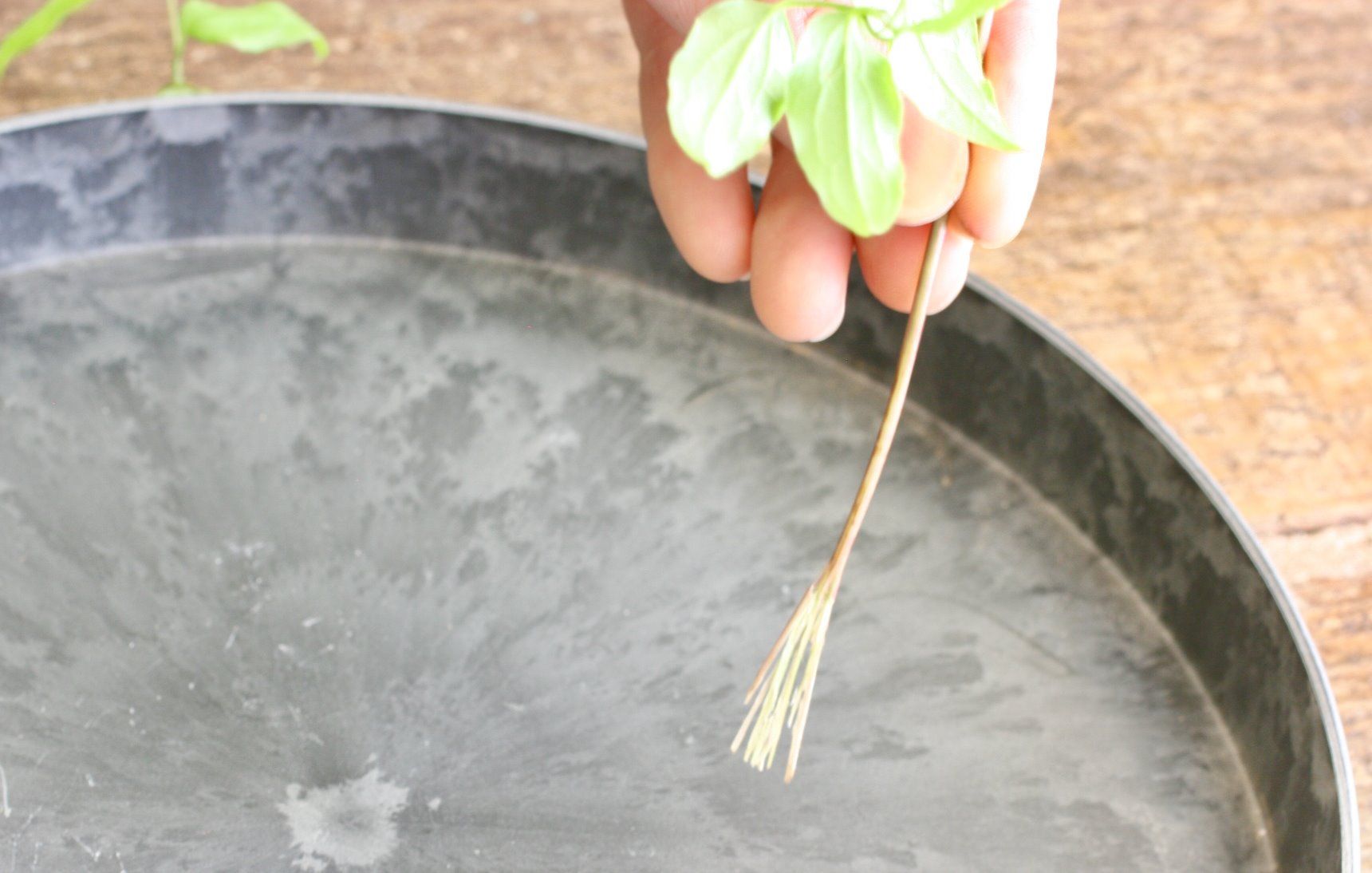 蔓ものの基本的な水あげ方法は「根元叩き」。文字通り、茎の根元を叩くやり方です。