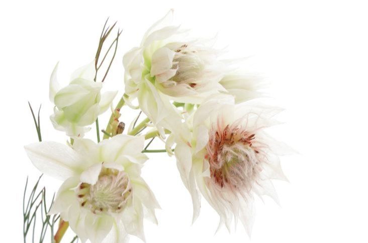 英名はブラッシングブライド。「頬を染めた花嫁」という意味をもつ、ロマンティックな花です。南アフリカ原産で、オーストラリアで栽培された花が日本に輸入されています。とてもきれいな花なので、ドライ・イン・ウォーター法で飾りながらドライフラワーにしてみては?