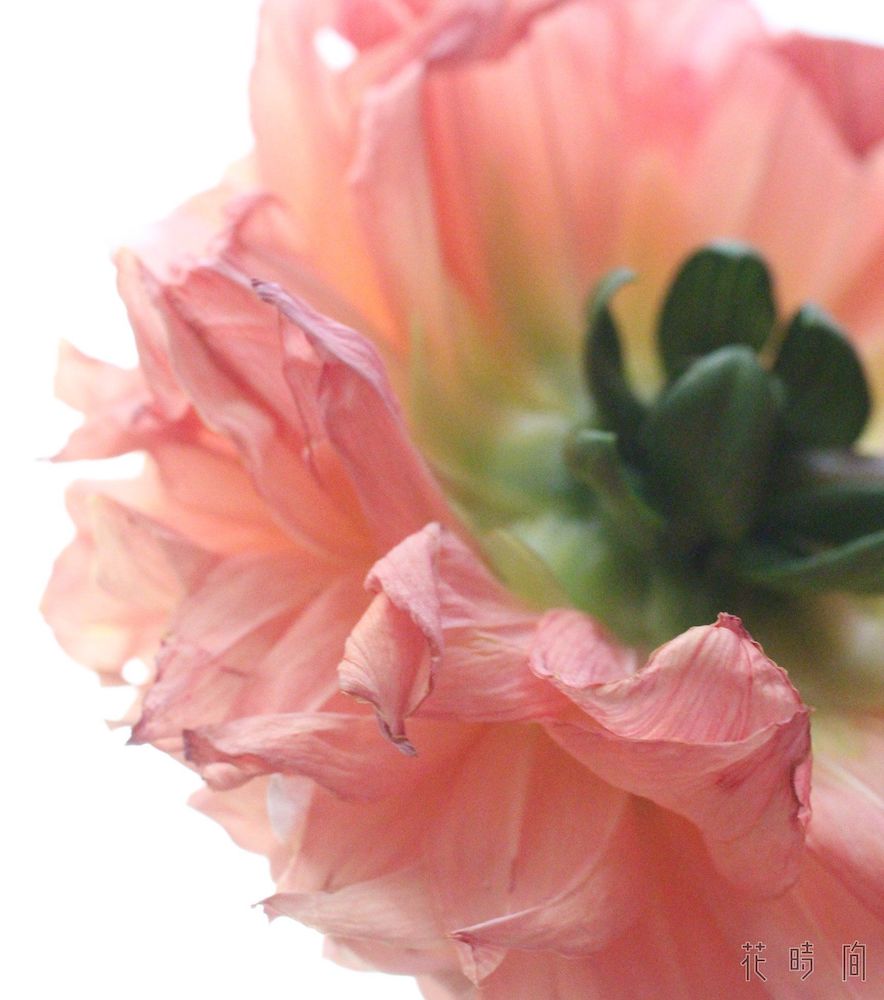 もしも作り置きの花束やアレンジからギフト選ぶなら、花びらをしっかり観察しましょう。↓の写真を見て! ダリアは裏側の花びらからしおれていきます。