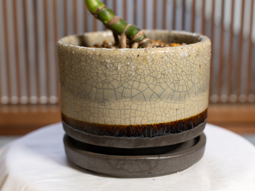 一方で、釉薬が塗られた和鉢は、見た目は和鉢でも水分が抜けにくく、乾き方はプラスチック鉢に近くなります。